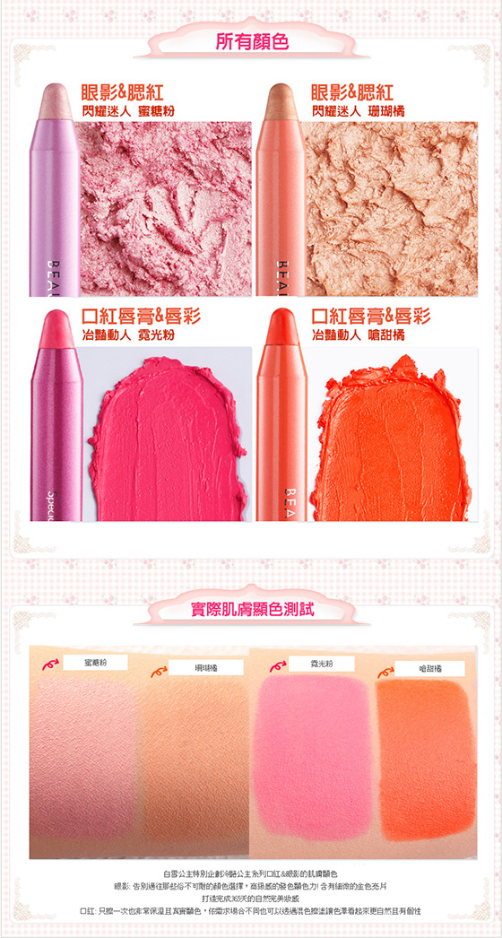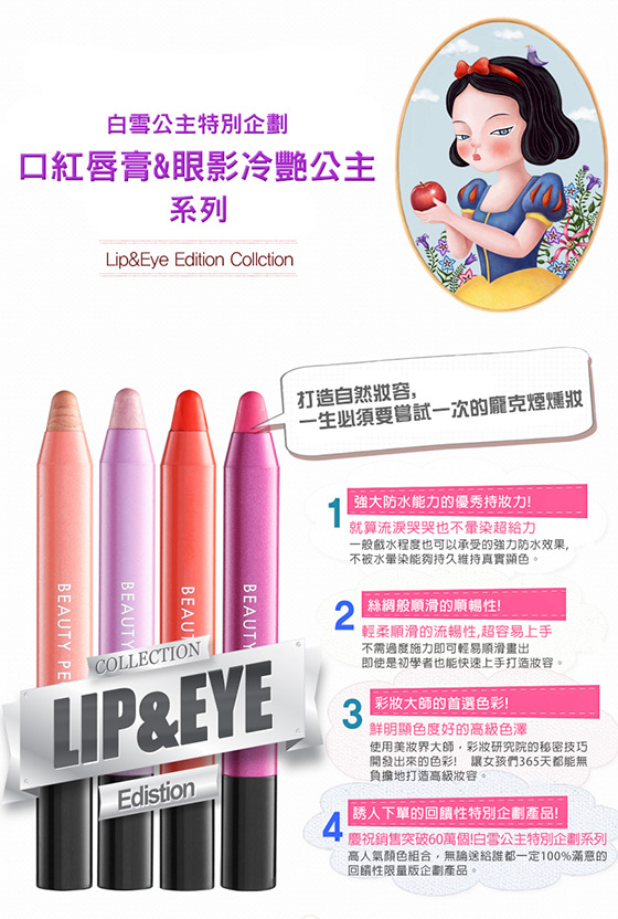 .....Beauty people-冷豔白雪公主眼影腮紅兩用唇彩蠟筆組"