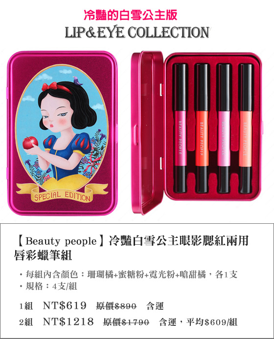 .....Beauty people-冷豔白雪公主眼影腮紅兩用唇彩蠟筆組"哪裡買最便宜.心得文.試用文.分享文
